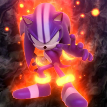 This form is another very rare form that has only appeared once. Sonic was transported into another dimension to the world of the Arabian Nights where a being known as the Erazor Djinn was trying to collect the World Rings to rewrite history. In the final battle after Erazor Djinn absorbes the energy from some of the World Rings and becomes Alf-Layla-Wa-Layla. The left over energy was then channeled into Sonic from three of the rings, particually the World Rings of Rage, Hatred, and Sadness. Because of this while in this form his personality became more sinister and violent.